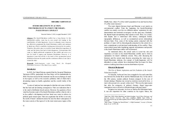 Israeli-Palestinian relations, the concept of hydro-hegemony will be