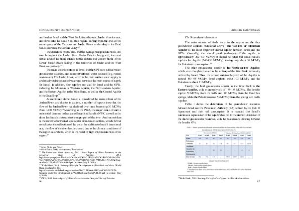 Eastern Aquifer, with an annual yield of 145-185 MCM/y. The Israelis