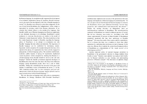 monolingualizing tendencies in Kazakhstan. The monolingualizing
