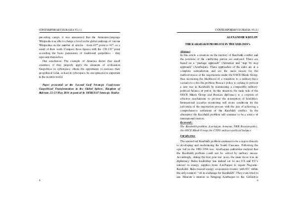 THE KARABAKH PROBLEM IN THE MID-2010’s