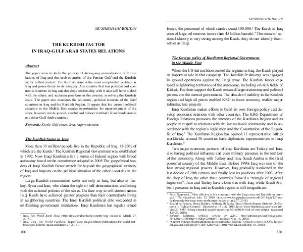 lations of Iraq and the Arab countries of the Persian Gulf and the Kurdish