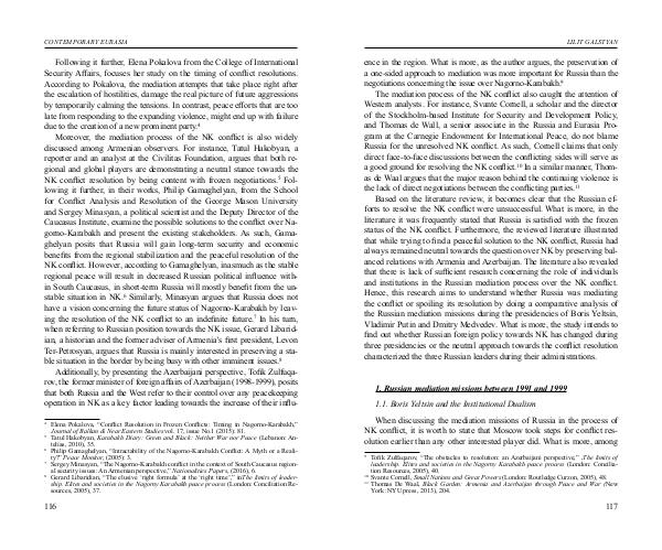 Elena Pokalova, “Confl ict Resolution in Frozen Confl icts: Timing in Nagorno-Karabakh,”