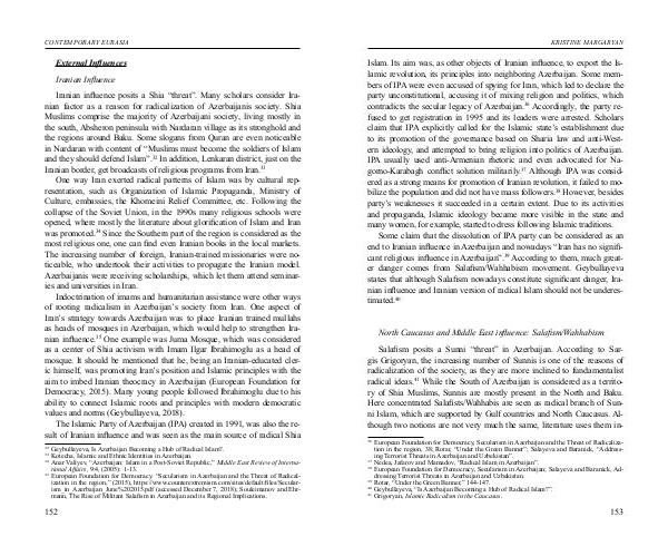 cant religious infl uence in Azerbaijan”. 39 According to them, much great-