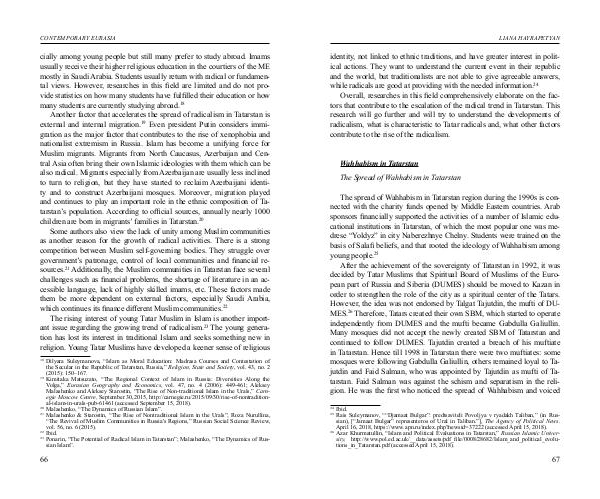 Ponarin, “The Potential of Radical Islam in Tatarstan”; Malashenko, “The Dynamics of Rus-