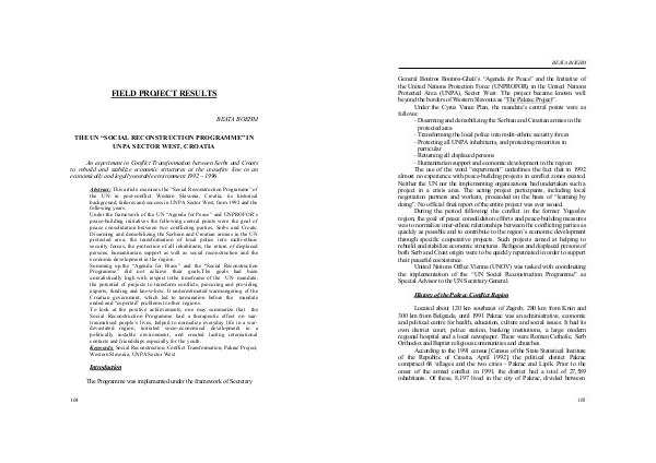 THE UN “SOCIAL RECONSTRUCTION PROGRAMME” IN UNPA SECTOR WEST …