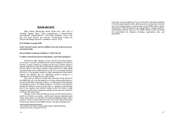 исследований “Китай-Евразия””, 2019, 1 (Мher Sahakyan, China’s One