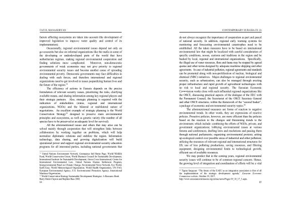 The efficiency of actions in Eurasia depends on the precise formulation of relevant security issues , prioritizing the risks , clarifying available means , and sharing information among key regional players and their strategic partners . Also , strategic planning is required with the indication of stakeholders ( states , regional and international organizations , NGOs ) and the bilateral or multilateral nature of negotiations . An excellent example of strategic planning is the World Conservation Strategy 25 designed to preserve main environmental principles and ecosystems , as well as genetic variety ( the number of all species have to be preserved at an adequate level for survival ).