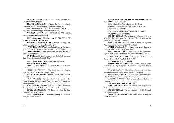 ORIENTAL STUDIES , NAS RA On the Independence Referendum in Iraqi Kurdistan Armenian-Polish Cooperation : Past , Present and Prospects Recent Developments in Syria