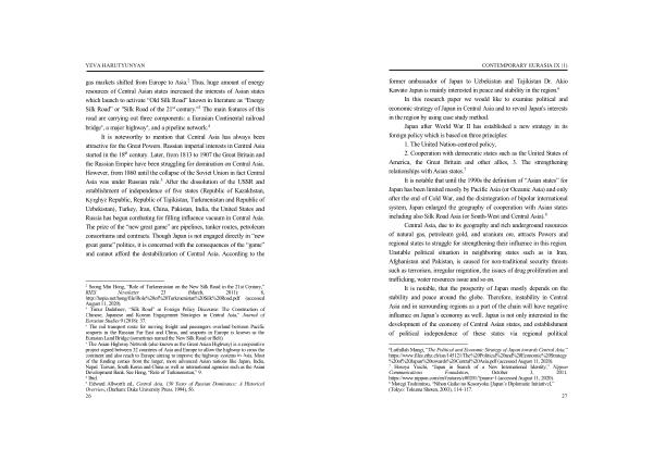 Timur Dadabaev , “ Silk Road ” as Foreign Policy Discourse : The Construction of Chinese , Japanese and Korean Engagement Strategies in Central Asia ,” Journal of Eurasian Studies 9 ( 2018 ): 37 .