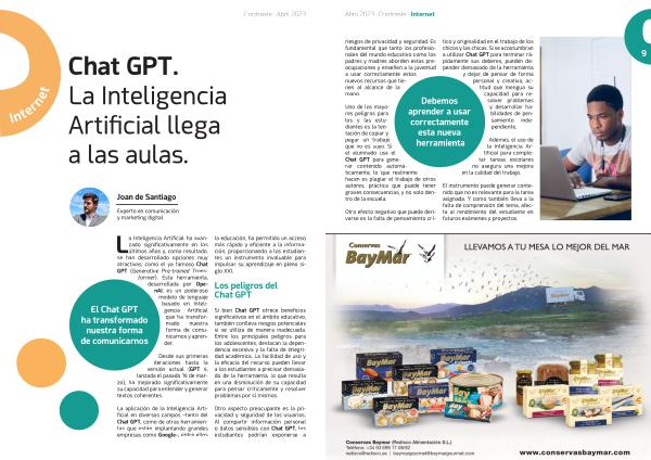 La aplicación de la Inteligencia Artificial en diversos campos – tanto del Chat GPT , como de otras herramientas que están implantando grandes empresas como Google –, entre ellos la educación , ha permitido un acceso más rápido y eficiente a la información , proporcionando a los estudiantes un instrumento invaluable para impulsar su aprendizaje en pleno siglo XXI .