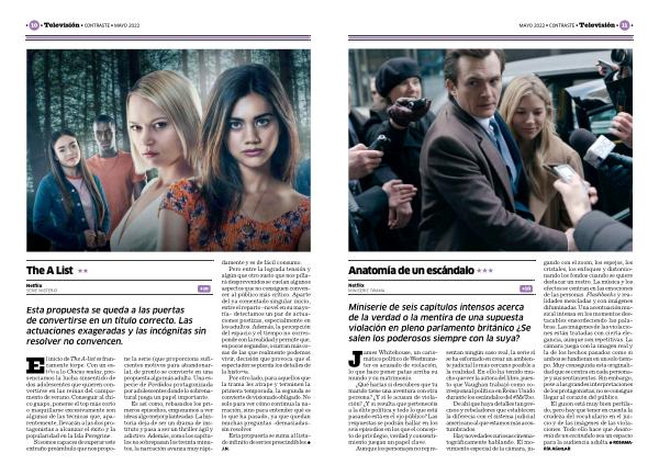 El guion está muy bien perfilado , pero hay que tener en cuenta la crudeza del vocabulario en el juicio y de las imágenes de las violaciones . Todo ello hace que Anatomía de un escándalo sea un espacio para la audiencia adulta . l Rosamaría Aguilar