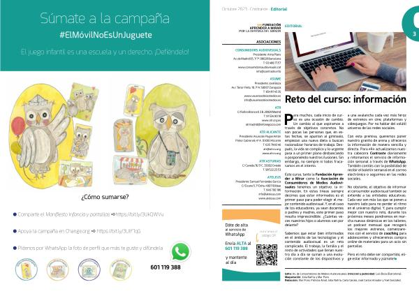 Este curso , tanto la Fundación Aprender a Mirar como la Asociación de Consumidores de Medios Audiovisuales tenemos un objetivo : la información . En estas líneas siempre decimos que estar informados es el primer paso para poder elegir el mejor contenido audiovisual . Y , en el caso de los educadores , ya sean docentes o padres y madres , este primer paso resulta imprescindible . ¿ Cuántas veces nuestros hijos o alumnos van por delante ?