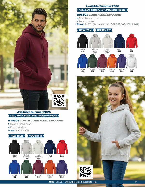 CORE FLEECE | www. wholesale. boxercraft. com 3