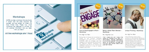 CORE provides workshops that are shorter in length than the other instructor led courses, and are perfect for those who have limited time. These live, virtual workshops are designed to provide you with practical information that you need, when you need it.