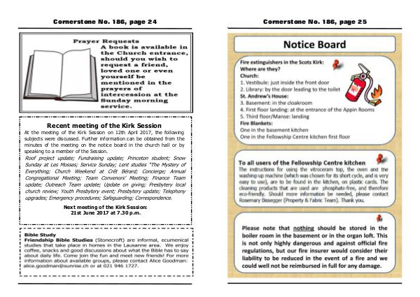 At the meeting of the Kirk Session on 12th April 2017, the following