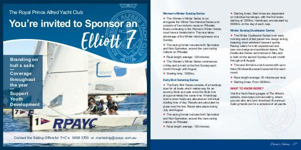 Contact the Sailing Offi ce for T+C’s: 9998 3700 or marketing@rpayc.com.au
