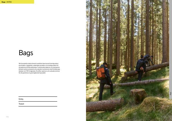 Vårt kompletta väsksortiment innefattar bland annat träningsväskor , sportväskor , ryggsäckar , vattentäta resväskor och smidiga väskor för användning vid olika aktiviteter . Funktionella material , som exempelvis slitstark ripstop-polyamid och polyester , kombineras med förstklassiga detaljer som YKK-dragkedjor , Duraflex-spännen och svetsade sömmar för att garantera en genomgående hög kvalité .