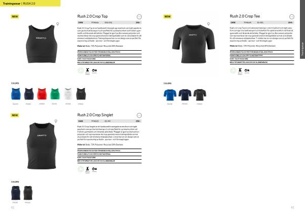 Rush 2.0 Crop Tee är en funktionell tränings-t-shirt med kort och tight passform som ger bra fukttransport och kyleffekt för optimal komfort vid friidrott , gymnastik och liknande aktiviteter . Plagget är gjort av återvunnen polyester och representerar den nya generationens träningskläder som är utvecklade för att minimera miljöpåverkan . T-shirten har en ren design som är perfekt för exponering av klubb- , sponsor- och företagsloggor .