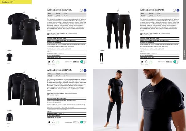 FLATLOCK SEAMS THAT FOLLOW BODY MOVEMENTS TIGHT FIT MOISTURE TRANSPORT : 5 OUT OF 5 ACTIVITY LEVEL : 5 OUT OF 5 TEMPERATURE : -5 º C TO + 10 º C