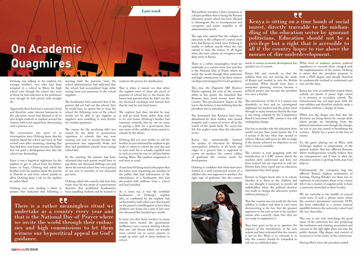 Ochieng was talking to his nephew, his younger brother’ s son, who had been accepted to a school in Meru for high school even though the school was none of those he had indicated as his preference even though he had passed with straight As.