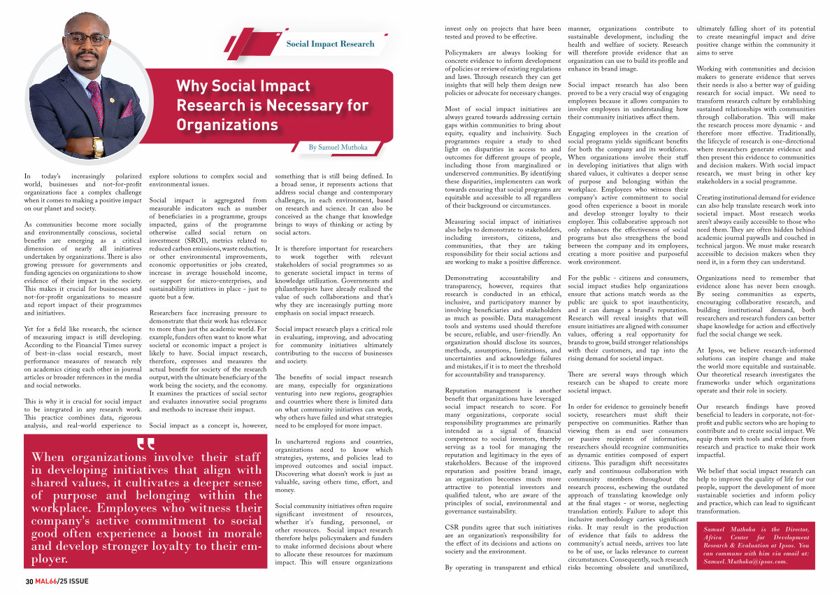 Samuel Muthoka is the Director, Africa Center for Development Research & Evaluation at Ipsos. You can commune with him via email at: Samuel. Muthoka @ ipsos. com.