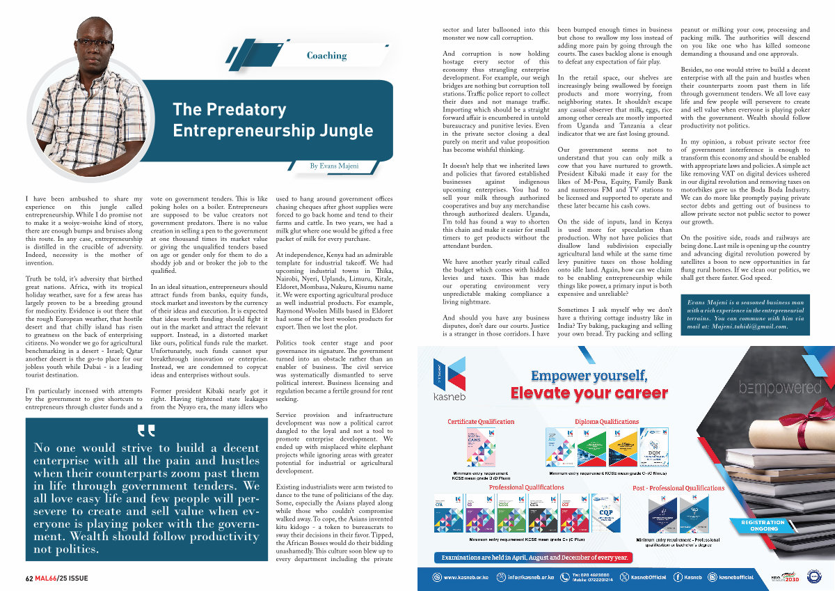 Evans Majeni is a seasoned business man with a rich experience in the entrepreneurial terrains. You can commune with him via mail at: Majeni. tahidi @ gmail. com.