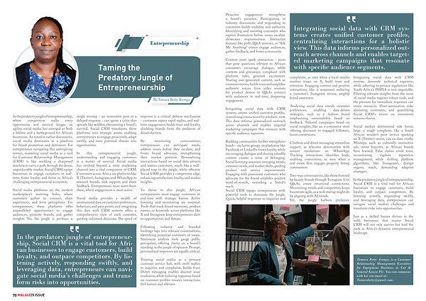 In the predatory jungle of entrepreneurship, Social CRM is a vital tool for African businesses to engage customers, build loyalty, and outpace competitors. By listening actively, responding swiftly, and leveraging data, entrepreneurs can navigate social media’ s challenges and transform risks into opportunities.