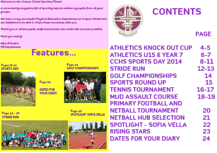 We have a very successful Physical Education Department at Corpus Christi and are delighted to be able to share these successes with you.