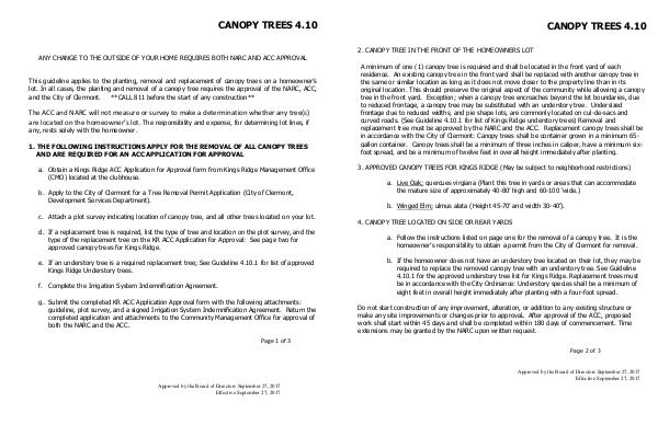 replacement tree must be approved by the NARC and the ACC. Replacement canopy trees shall be