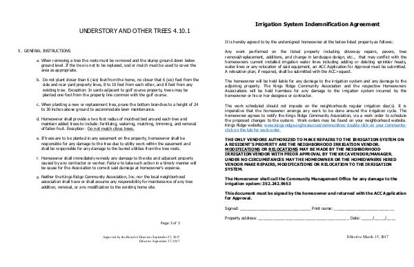 e. If trees are to be planted in any easement on the property, homeowner shall be