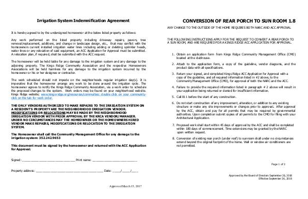 A SUN ROOM, AND ARE REQUIRED FOR A KINGS RIDGE ACC APPLICATION FOR APPROVAL.