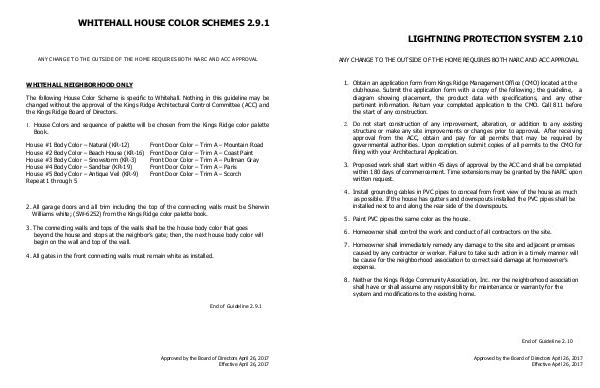 1. House Colors and sequence of palette will be chosen from the Kings Ridge color palette