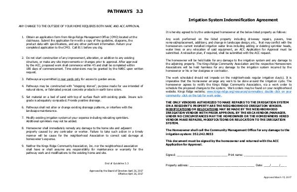 IRRIGATION VENDOR WITH PRIOR APPROVAL BY THE KRCA VENDOR/MANAGER.