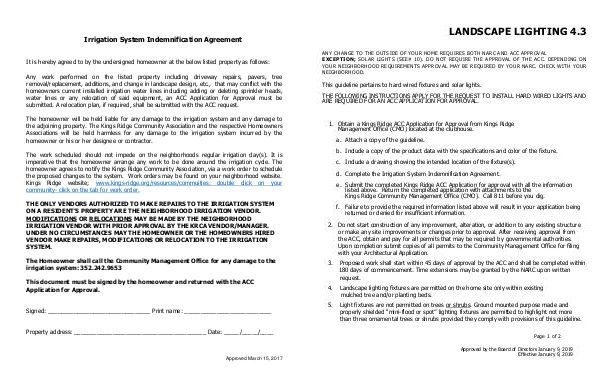 homeowner agrees to notify the Kings Ridge Community Association, via a work order to schedule