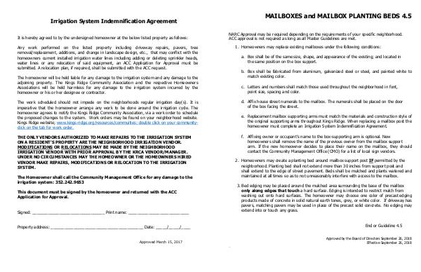 IRRIGATION VENDOR WITH PRIOR APPROVAL BY THE KRCA VENDOR/MANAGER.