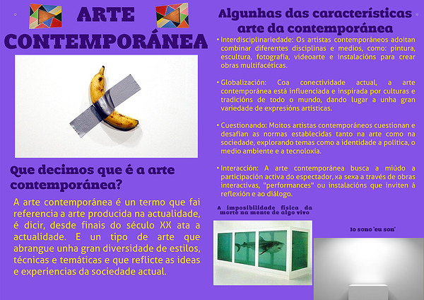 A arte contemporánea é un termo que fai referencia a arte producida na actualidade, é dicir, desde finais do século XX ata a actualidade. E un tipo de arte que abrangue unha gran diversidade de estilos, técnicas e temáticas e que reflicte as ideas e experiencias da sociedade actual.