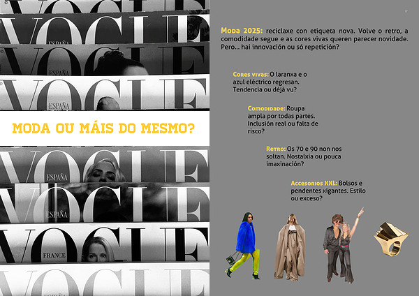 Moda 2025: reciclaxe con etiqueta nova. Volve o retro, a comodidade segue e as cores vivas queren parecer novidade. Pero… hai innovación ou só repetición?