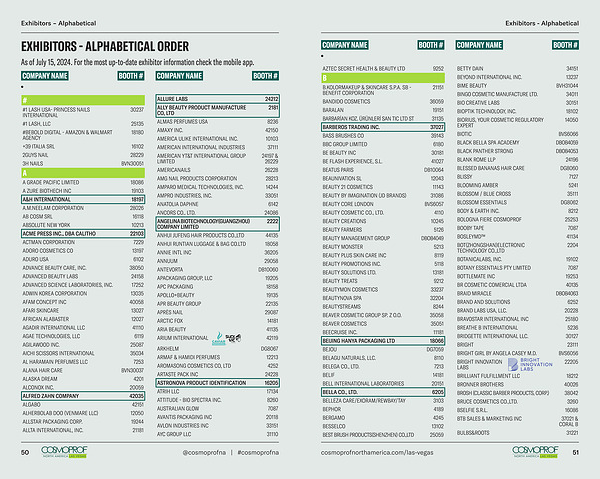 As of July 15 , 2024 . For the most up-to-date exhibitor information check the mobile app . COMPANY NAME BOOTH # COMPANY NAME BOOTH #