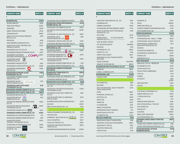 GUANGZHOU AMARRIE COSMETIC CO , LTD 2159 GUANGZHOU AMY PLASTIC TUBE CO ., LTD 18067 GUANGZHOU BAIHUA CO ., LTD 3261