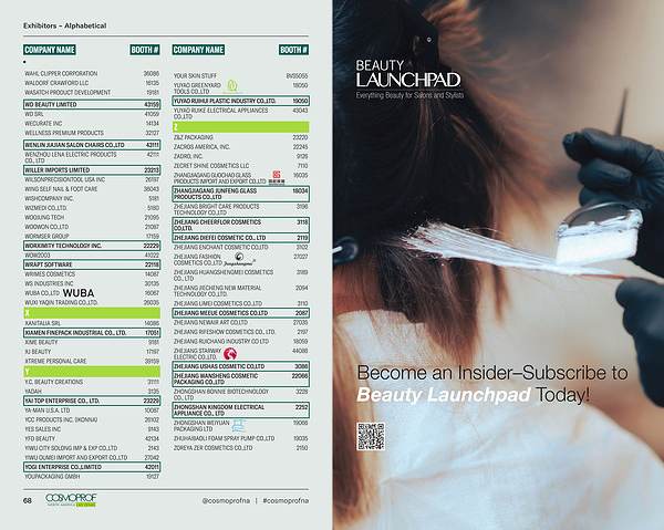 ZHEJIANG LIMEI COSMETICS CO ., LTD 3110 ZHEJIANG MEEUE COSMETICS CO . LTD 2087 ZHEJIANG NEWAIR ART CO , LTD 27035 ZHEJIANG RIFESHOW COSMETICS CO ., LTD . 2197 ZHEJIANG RUICHANG INDUSTRY CO LTD 18059