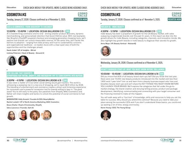 Wednesday, January 28, 2026 | Classes confirmed as of November 5, 2025.