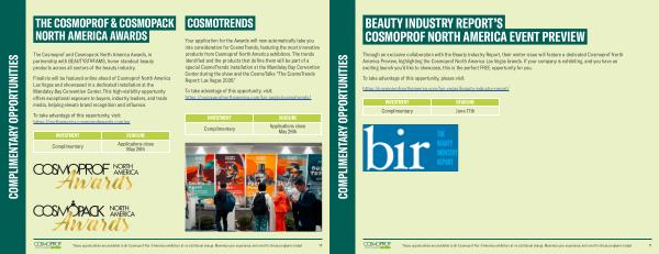 These opportunities are available to all Cosmoprof North America exhibitors at no additional charge. Maximize your experience and enroll in these programs today! 11