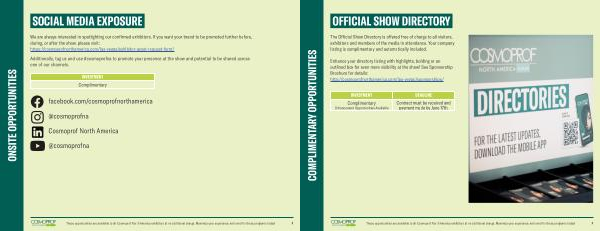 These opportunities are available to all Cosmoprof North America exhibitors at no additional charge. Maximize your experience and enroll in these programs today! 8