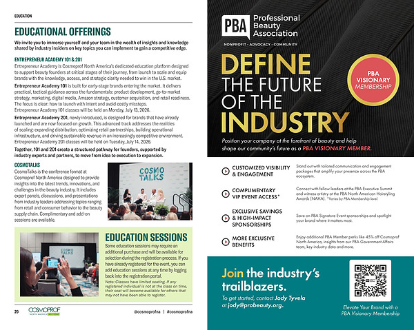 ENTREPRENEUR ACADEMY 101 & 201 Entrepreneur Academy is Cosmoprof North America’ s dedicated education platform designed to support beauty founders at critical stages of their journey, from launch to scale and equip brands with the knowledge, access, and strategic clarity needed to win in the U. S. market.