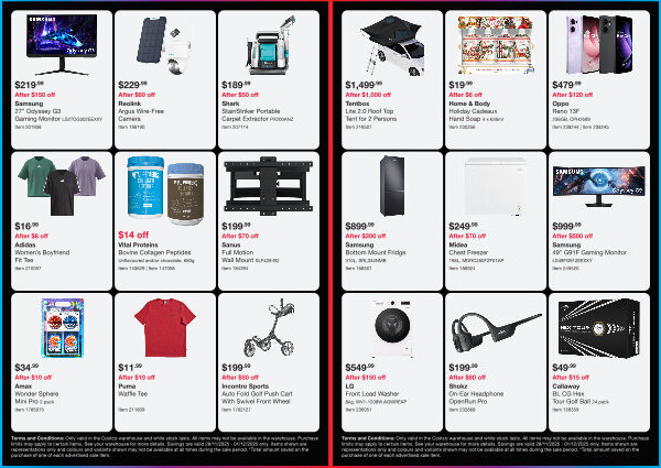 Terms and Conditions: Only valid in the Costco warehouse and while stock lasts. All items may not be available in the warehouse. Purchase limits may apply to certain items. See your warehouse for more details. Savings are valid 28 / 11 / 2025- 01 / 12 / 2025 only. Items shown are representations only and colours and variants shown may not be available at all times during the sale period. * Total amount saved on the purchase of one of each advertised sale item.