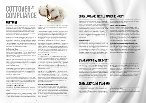 Die Mehrheit der Fairtrade-zertifizierten Landwirte ist auch biologisch zertifiziert. Die Besonderheit von Fairtrade besteht darin, dass ein angemessenes Lohnniveau gewährleistet wird, was bei Bio-Zertifizierungen nicht der Fall ist. Durch Doppelzertifizierungen- Fairtrade und Bio- können beide Aspekte abgedeckt werden. Die gesamte Baumwolle der Cottover-Kollektion ist doppelt zertifiziert, mit Fairtrade und GOTS, einer Bio-Zertifizierung. Cottover trägt ausserdem die Label OEKO-TEX- so dass möglichst viele Nachhaltigkeitsaspekte entlang der gesamten Produktionskette abgedeckt werden können.