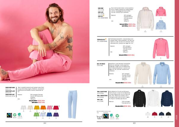 Byxa i sweatshirtmaterial med borstad insida. Bred linning med kraftig dragsko. Sidofickor, raka benslut. Bakficka på herrmodellen. Normal maskintvätt vid 40 °