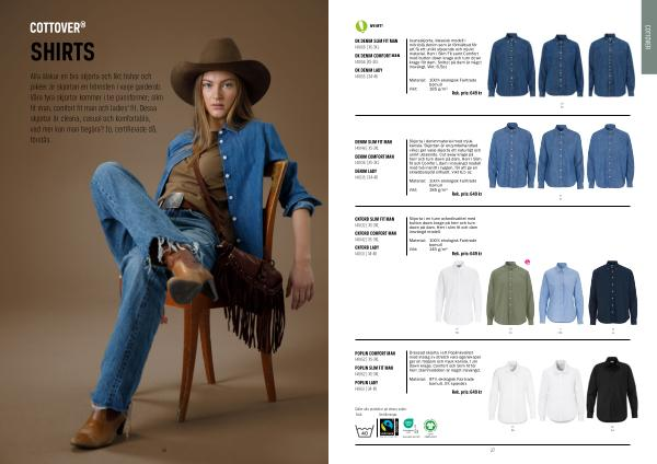 Skjorta i denimmaterial med mjuk känsla. Skjortan är enzymbehandlad vilket ger varje skjorta ett naturligt och unikt utseende. Cut away krage på herr och turn down på dam. Herr i Slim fit och Comfort, dam i insvängd modell med två insnitt i ryggen, för att ge en skräddarsydd silhuett. Vikt 6,5 oz.