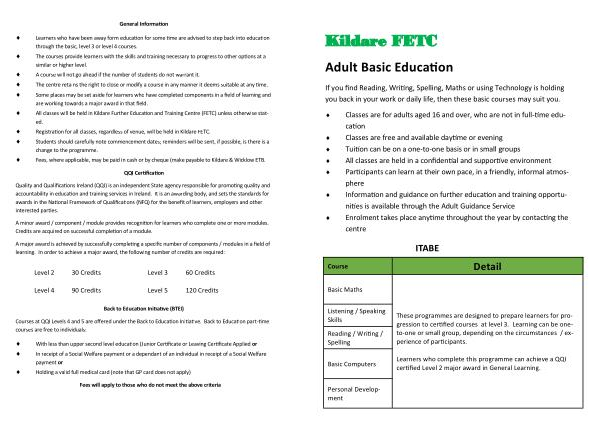 � All classes will be held in Kildare Further Education and Training Centre ( FETC ) unless otherwise stated .