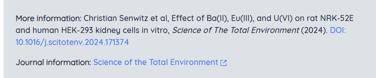 "In our comprehensive study, we compared the effects of barium(II), europium(III), and uranium(VI) on human and rat kidney cells in vitro, i.e., under controlled laboratory conditions outside the living organism. The cell experiments were conducted at the Central Radionuclide Laboratory at TU Dresden," explains Dr. Anne Heller from the Chair of Radiochemistry/Radioecology at TU Dresden.